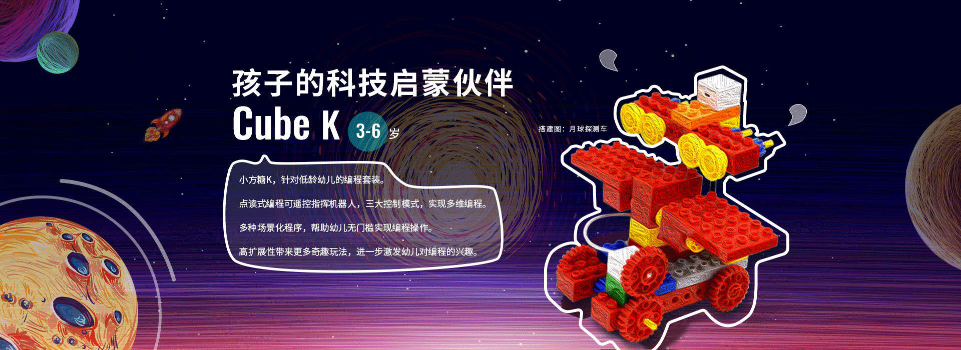 Cube K拥有多个智能模块,精致萌趣,本领强大,声、光、动的酷炫效果可适应多种场景,满足孩子天生的创造力和想象力。